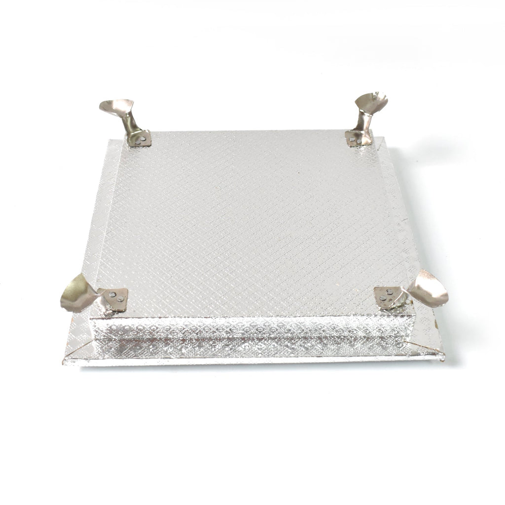 Silver - Square Wooden Pooja Chowki Patla / Bajot for House and Office Temple, Pooja Bajot, Pooja Item Gift Article, Festival Dcor, Puja Item, Gift Item (20×20 CM / 1 Pc)