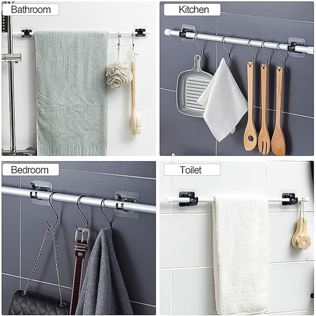 Heavy-Duty Wall-Mount Mop / Broom Holder Clip with Transparent Adhesive Base – Self-Adhesive No-Drill Organizer for Home, Kitchen, and Bathroom (2 Pc, Black)