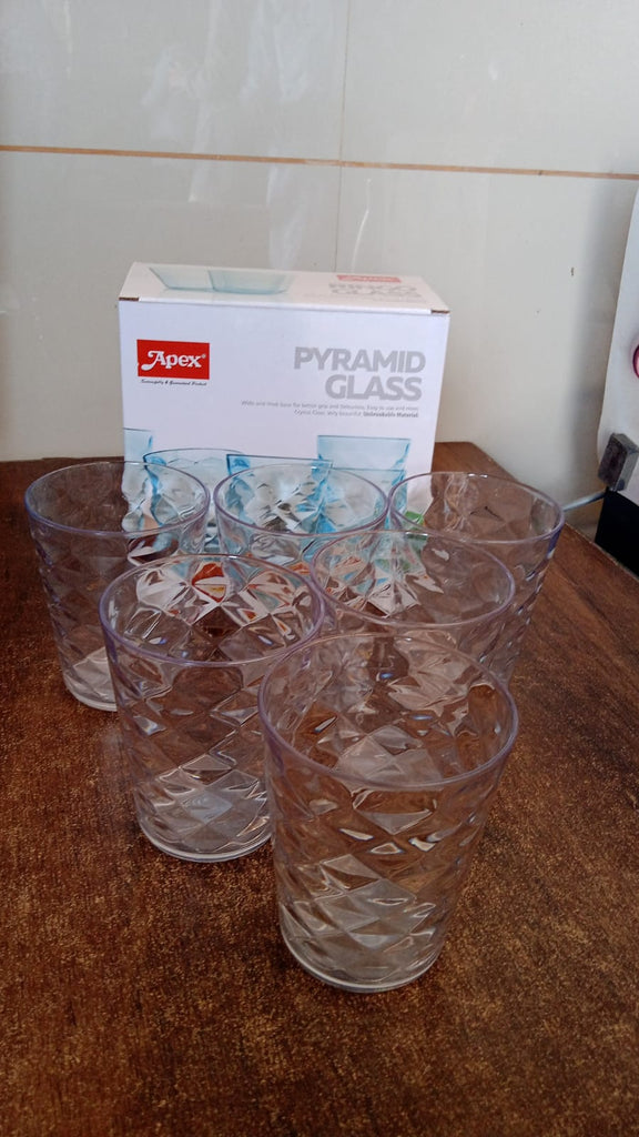 Serve your favorite beverages in style with this uniquely designed Pyramid Plastic Glass – 300 ML, crafted for both elegance and everyday functionality. With its crystal-clear body and textured pyramid surface, this glass brings a premium feel while being incredibly practical for daily use.