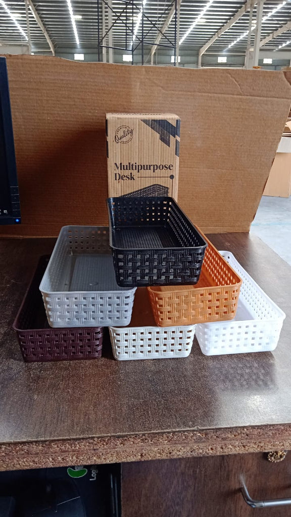 8787 Plastic Multipurpose Desk Organizer Tray Office Drawer Dividers Storage Bins for Kitchen, Bathroom, Office, Makeup, Bedroom Dresser, Craft Basket Rack Multicolour (6 Pcs Set)