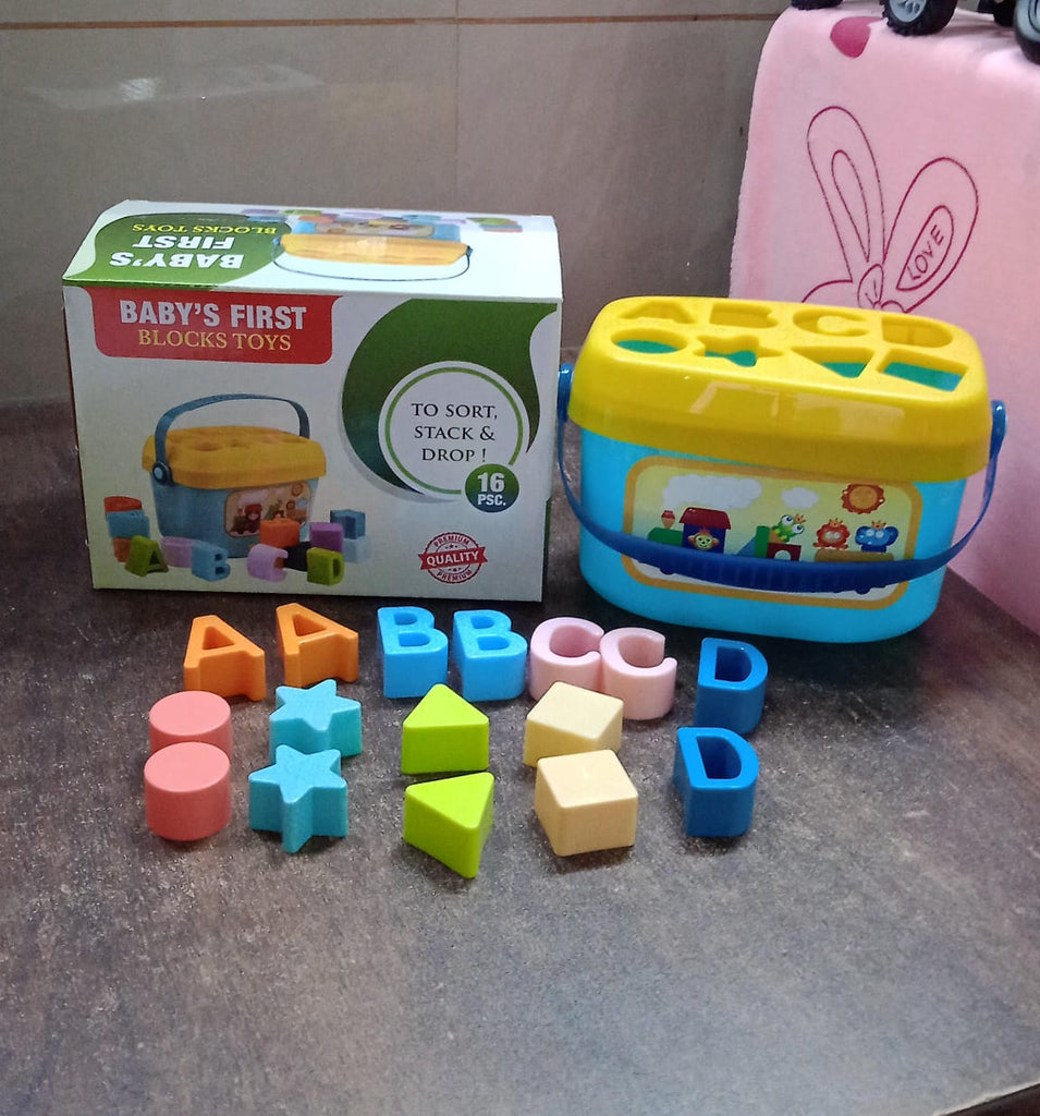 Baby First Block Set for Kids Non-Toxic Abcd Geometric Shape Sorting & Stacking Toy For Toddlers Early Learning Development Activity Puzzle Toy For 18 Months+,16 Peices Blocks With Basket, Multicolor Toddler Center Best First Birthday Gift (1 Set)