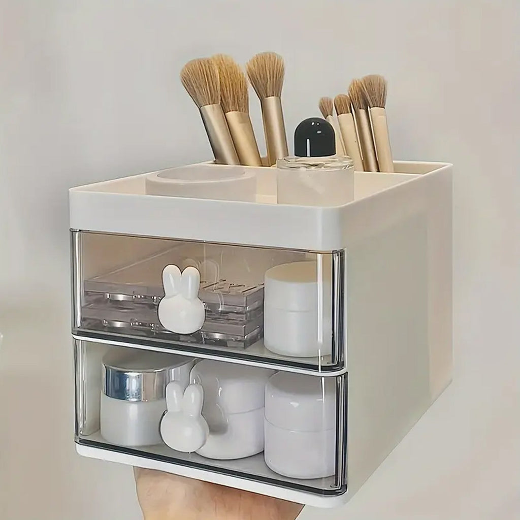 2 Layer 5 Compartment Desk Organizer with Drawer, Large Capacity Office Workspace Desktop Organizers with Transparent Drawer, Stationery Supplies Storage Box for Office, School, Home (1 Pc / 15×13×11 Cm)