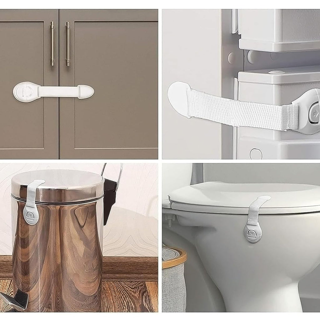 • Child safety strap locks are made of high-quality ABS plastic, and the strap can bear high tension force. Adhesive will hold toughly and does no damage to any furniture surface. Easy to remove later.