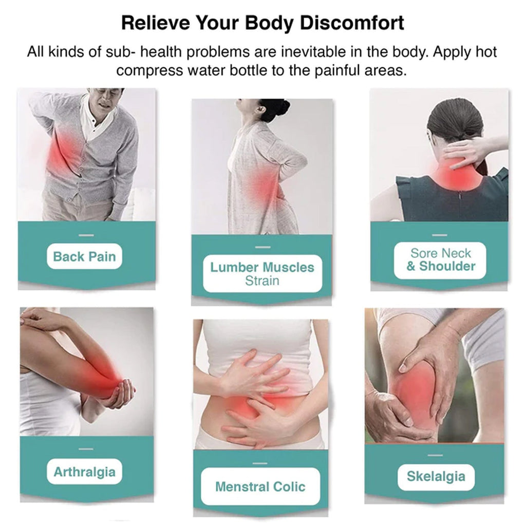 - Small hot water bag pain Relief. Warm bottle for hot water is best for sore muscles, stress, migraines, menstrual aches and cramps. The cover is soft, which protects you from excessive heat and makes your skin feel great.