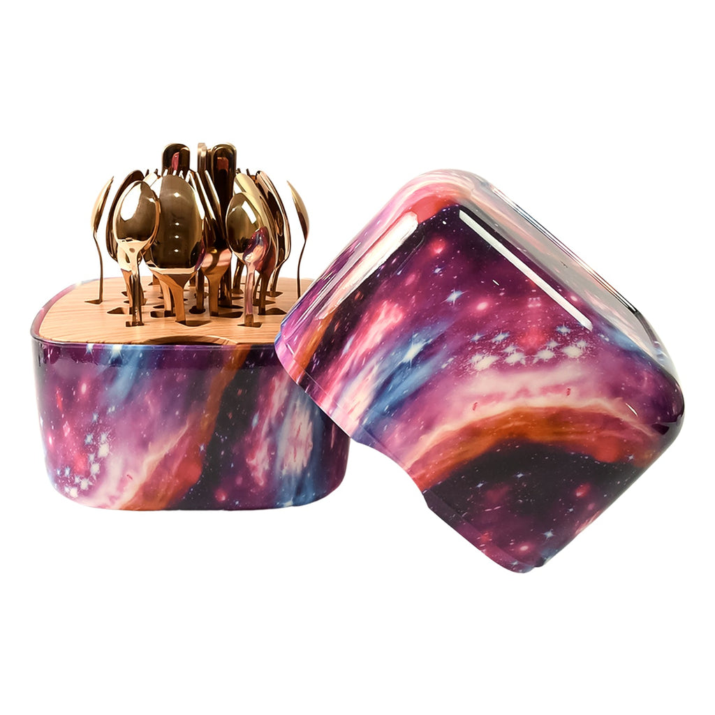 5593 Unique Golden Egg Storage Modern Tableware Steak Knives Fork Flatware Set Royal Spoon Set Tableware Gold Cutlery Set Dishwasher Safe Mirror Finished With Gift Box for Halloween 24Pcs Set